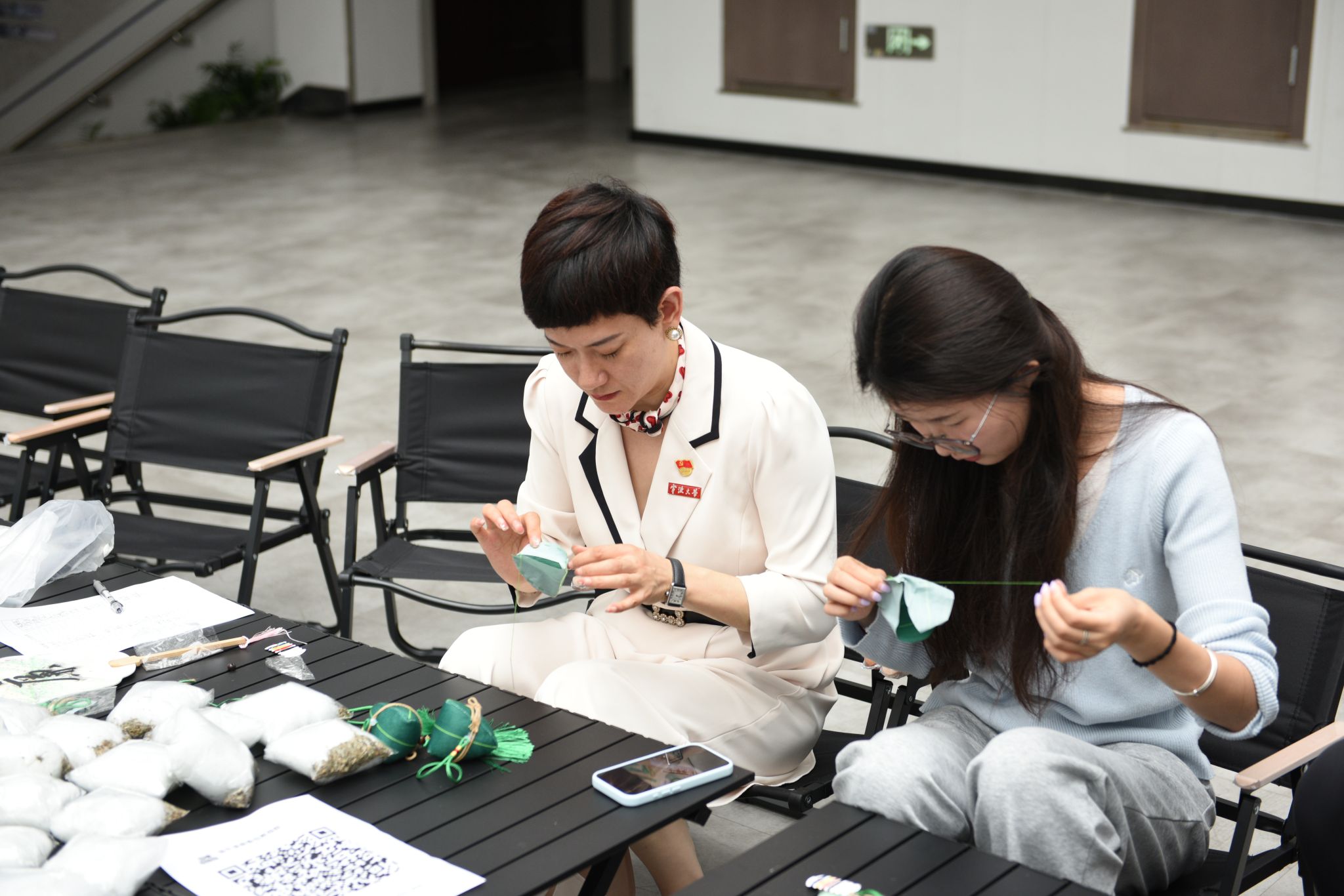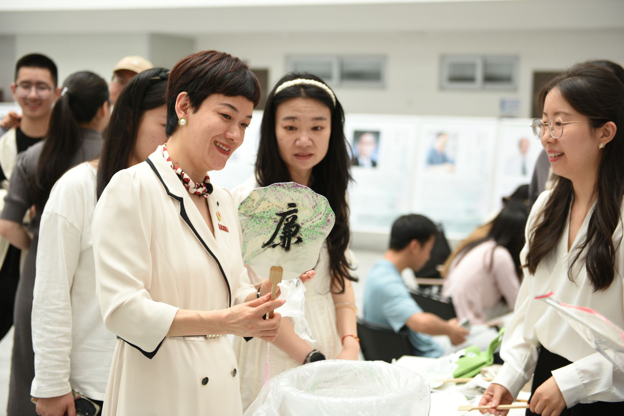 恰逢端午临近,活动还特别设置“粽香话廉”手工体验区,师生们在现场包制“廉洁粽”,编织艾草香囊并在漆扇上题写廉语,融廉于趣,润物无声。