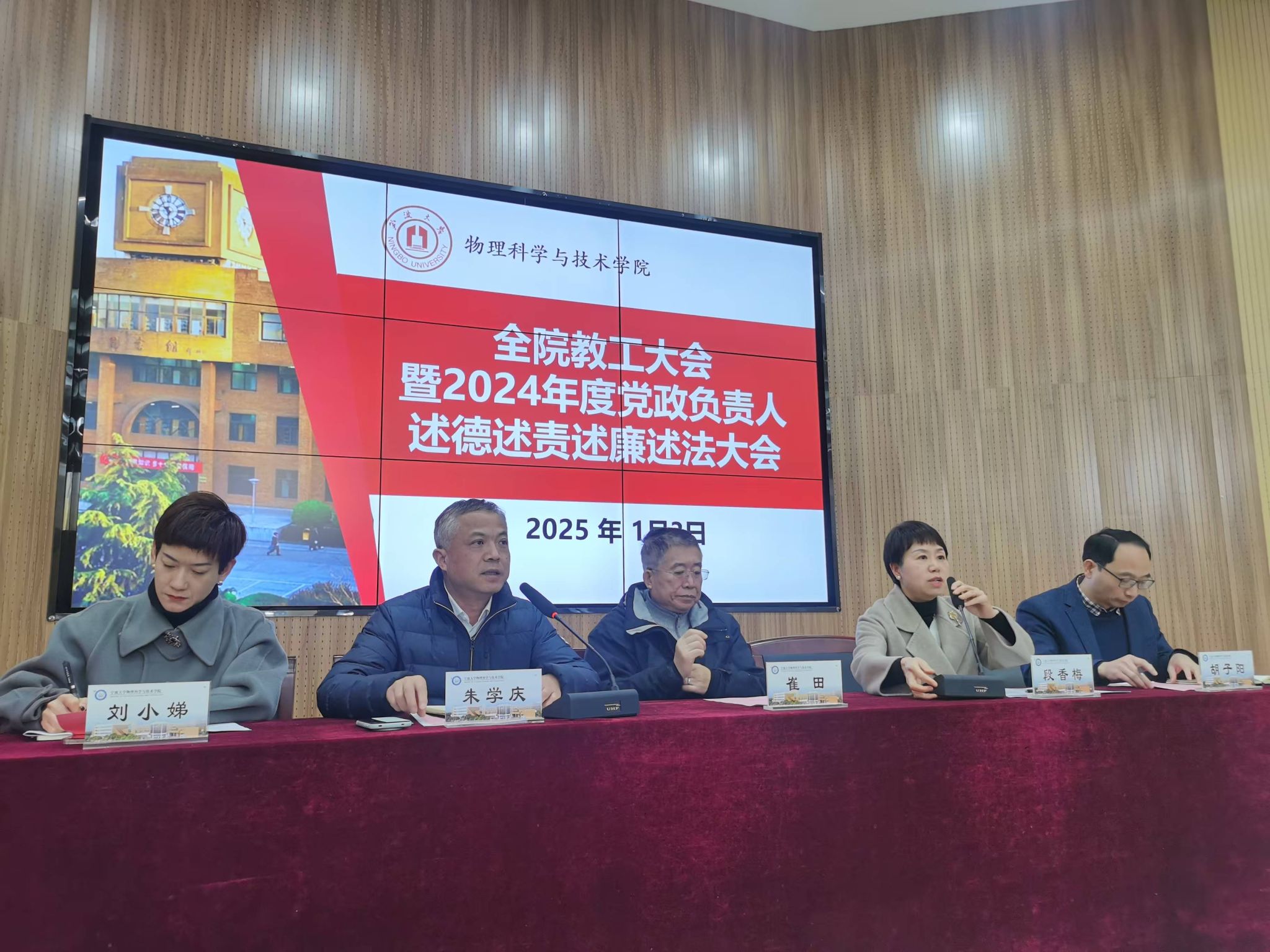 1月3日,萌次元 在龙赛报告厅召开2024年度全院教工大会暨党政负责人述德述责述廉述法大会。学院党政领导成员、全院教职员工参加会议,会议由院党委书记朱学庆主持。