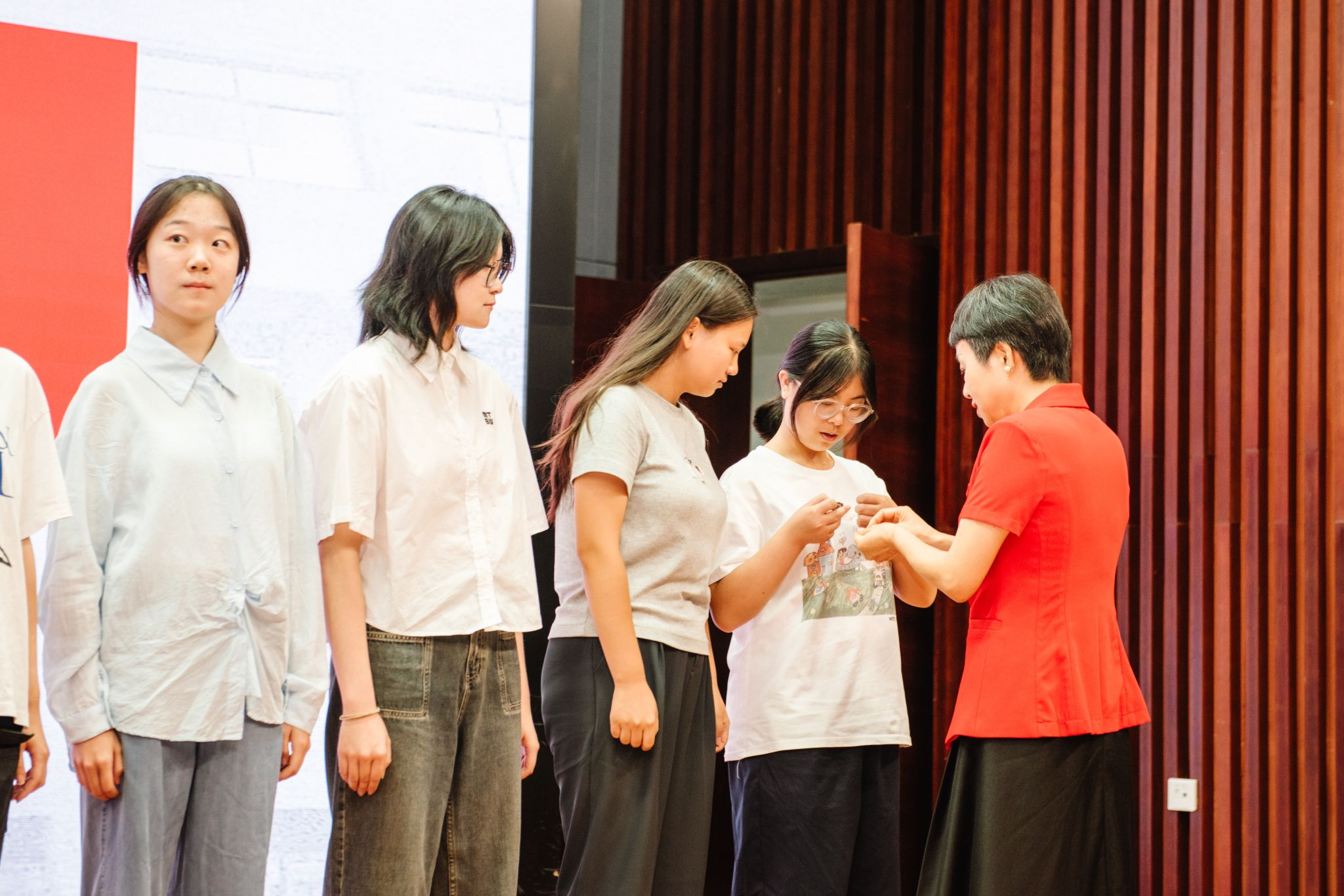 院徽佩戴,使命启程。学院党政领导为新生代表佩戴萌次元 院徽,院徽不仅是身份的象征,更是一份精神的传递。它提醒每位同学铭记探索真理的初心,肩负起物理人的使命与荣光。