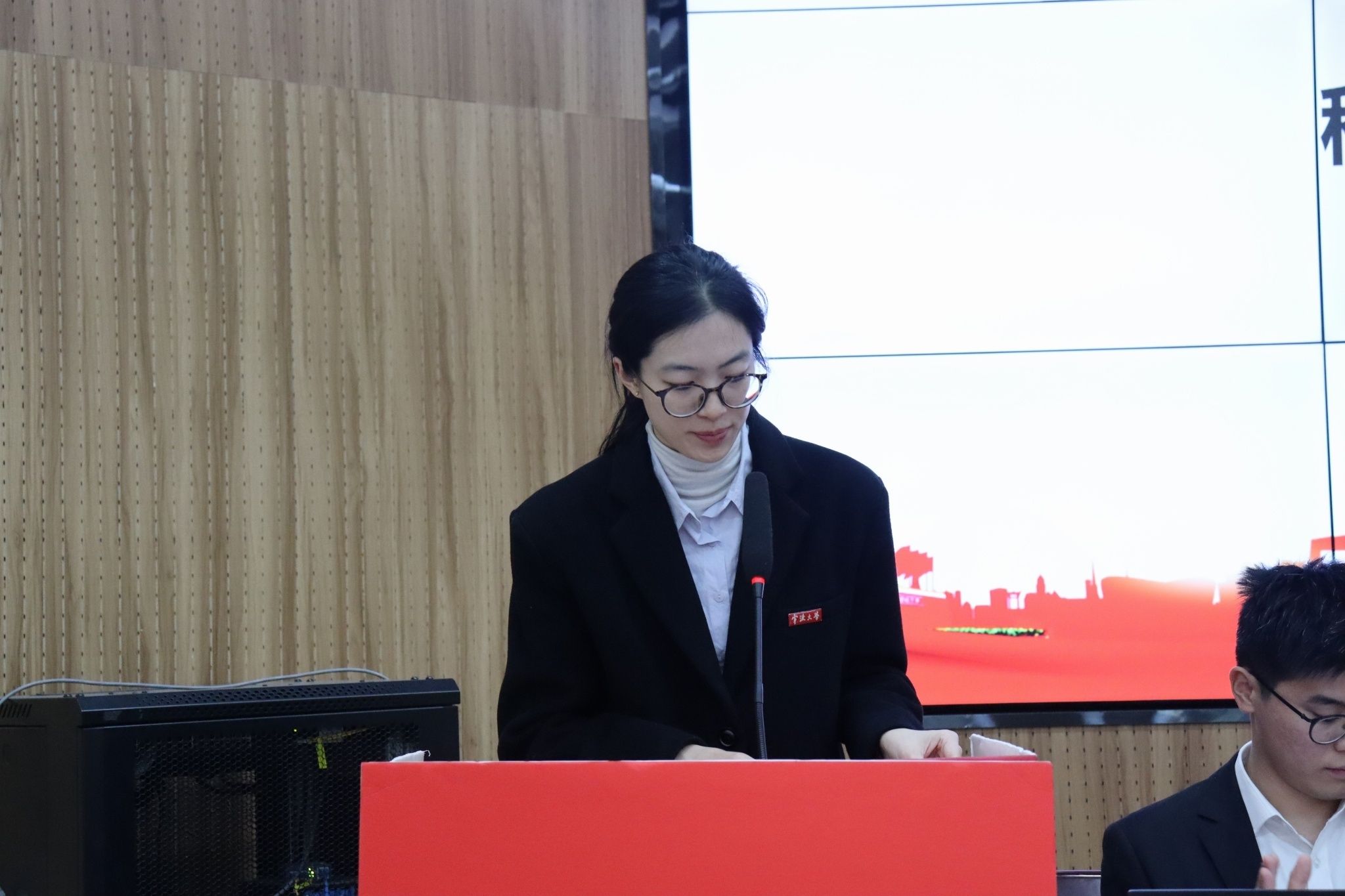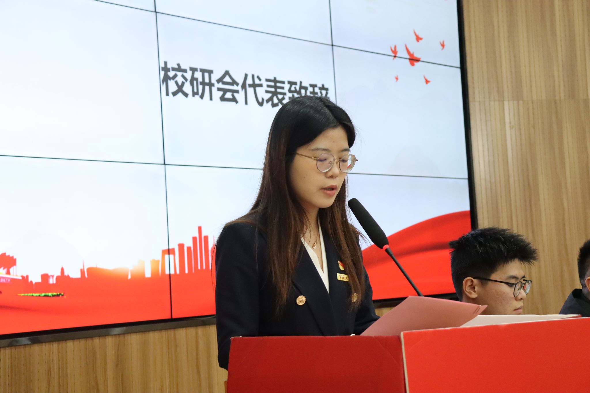 研究生辅导员、研究生会秘书长毛忻怡致闭幕辞。她对大会各项议程进行了系统回顾与总结,并向上届院研究生会的辛勤付出致以诚挚谢意。她希望与会代表与新一届研会骨干能够牢记使命、履职担当,持续开拓创新,充分激发青年智慧与活力,努力成长为新时代青年的典范与表率。