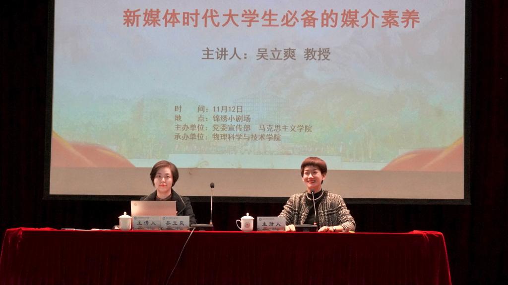 11月12日上午,校党委宣传部常务副部长吴立爽为萌次元 300余位师生主讲题为《新媒体时代大学生必备的媒介素养》的形势政策课。本次课程由院党委副书记刘小娣主持。