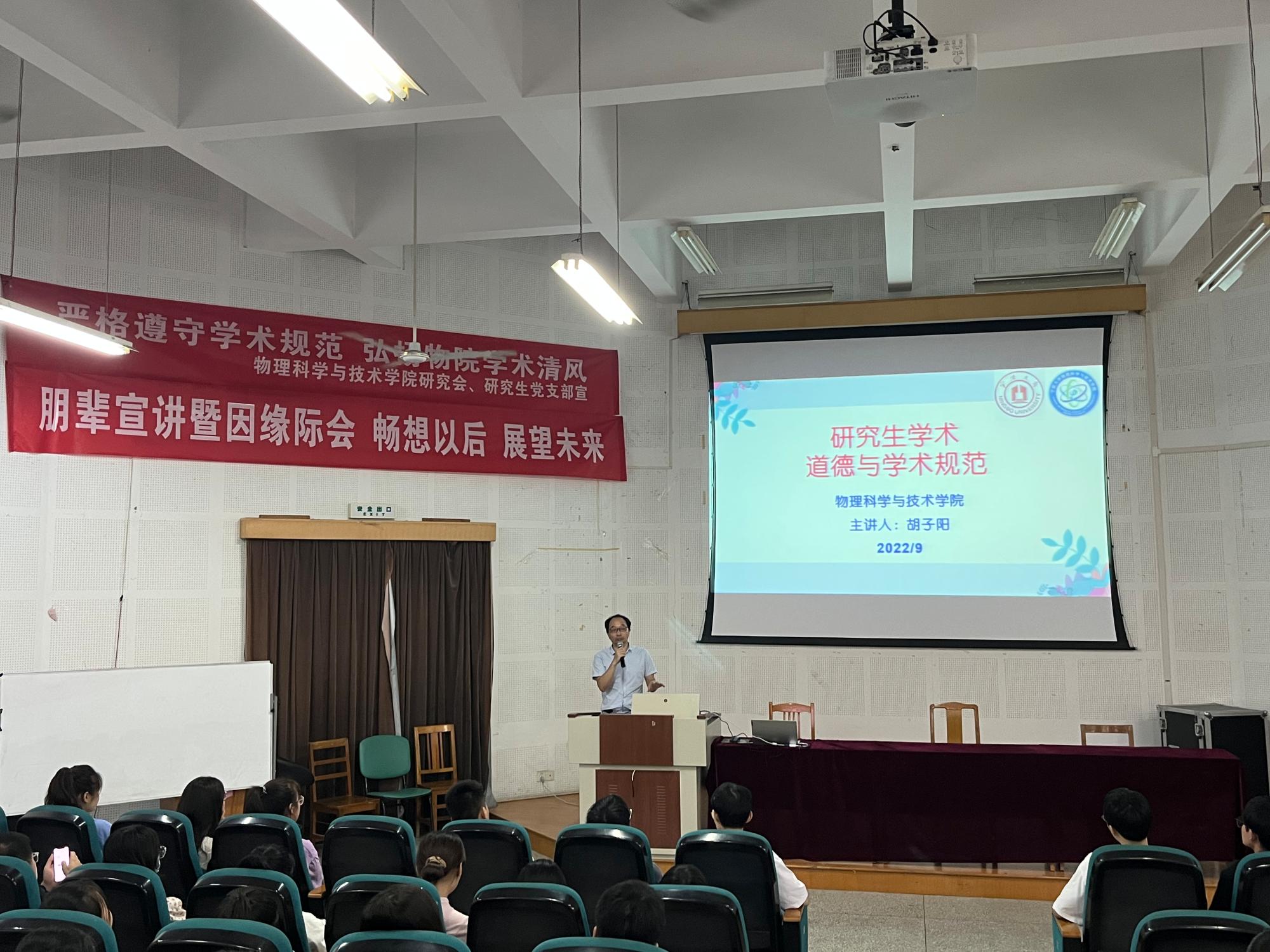 为进一步加强物院研究生学术道德建设,遵守科学道德和学术诚信,杜绝学术不端行为,营造良好的学术氛围和制度环境。9月23日,萌次元 在龙赛报告厅举行“严格遵守学术规范、弘扬物院学术清风”为主题的讲座活动。本次活动特别邀请了党委委员胡子阳教授进行讲座,22级硕士新生参加此次活动。
