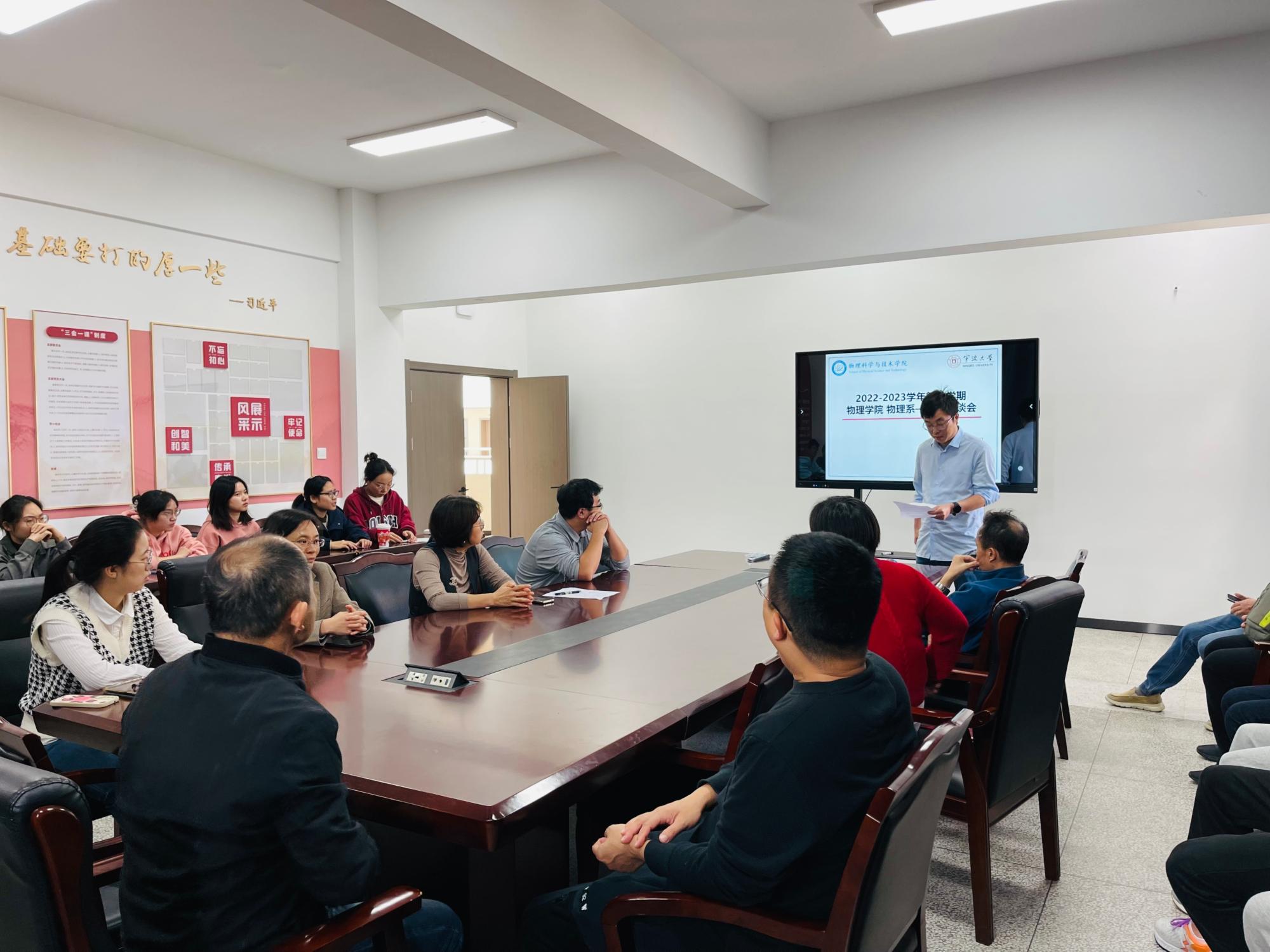 11月9日中午,物理系在龙赛理科楼北楼228会议室顺利举行2022-2023学年第一学期期中师生座谈会。萌次元 执行院长段香梅、教学副院长楼慈波、各任课教师、教务办和学工办老师以及20余位物理系学生代表参加了此次会议。会议由系主任汤世伟主持。