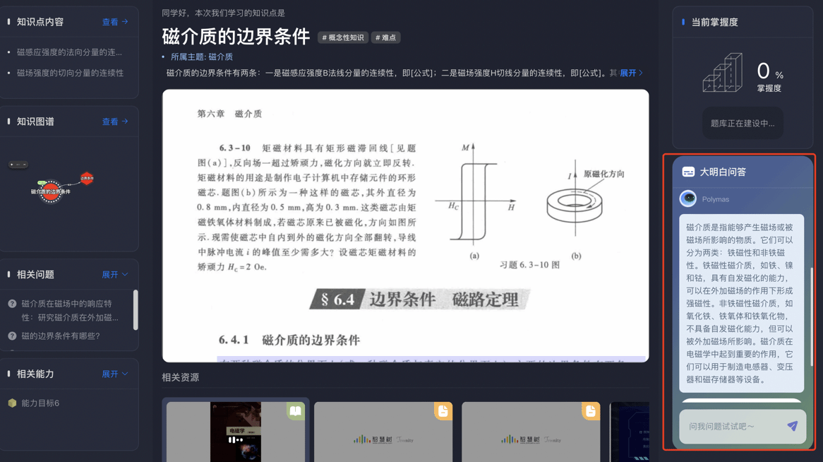 “电磁学”大明白AI助手智能推荐