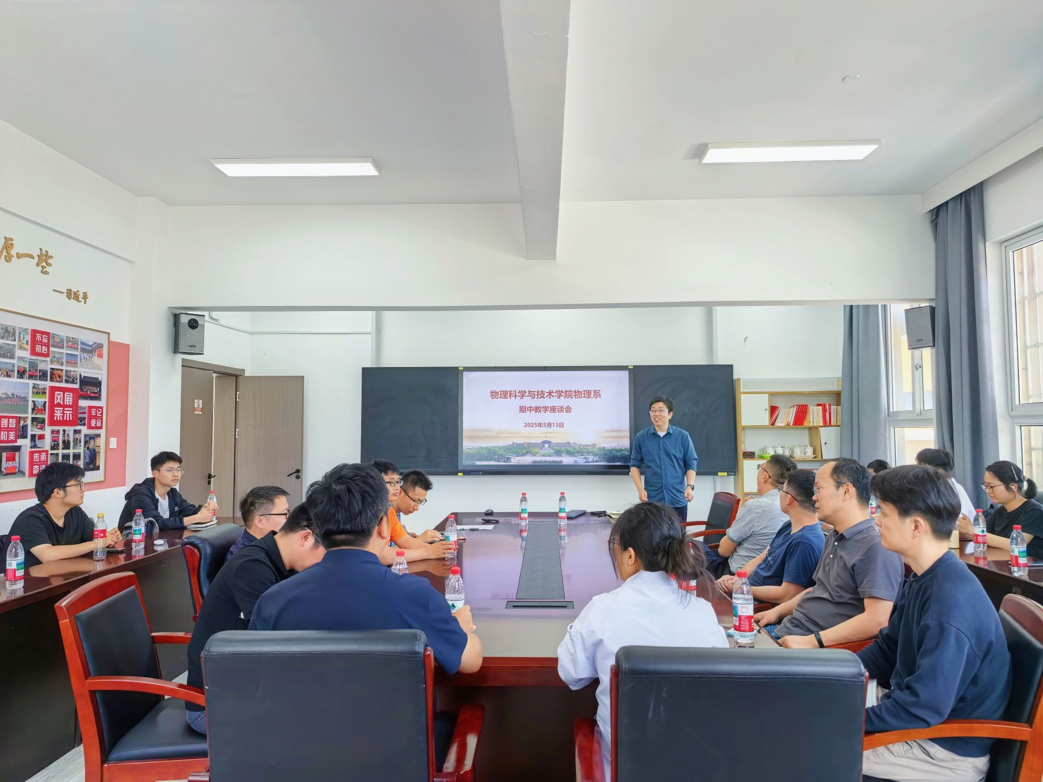 2025年5月13日中午,萌次元 物理系期中教学座谈会在龙赛理科楼228会议室顺利召开。会议由物理系主任汤世伟主持,教师代表、学生代表、教务办老师参与,围绕同学们的学习和生活展开讨论。
