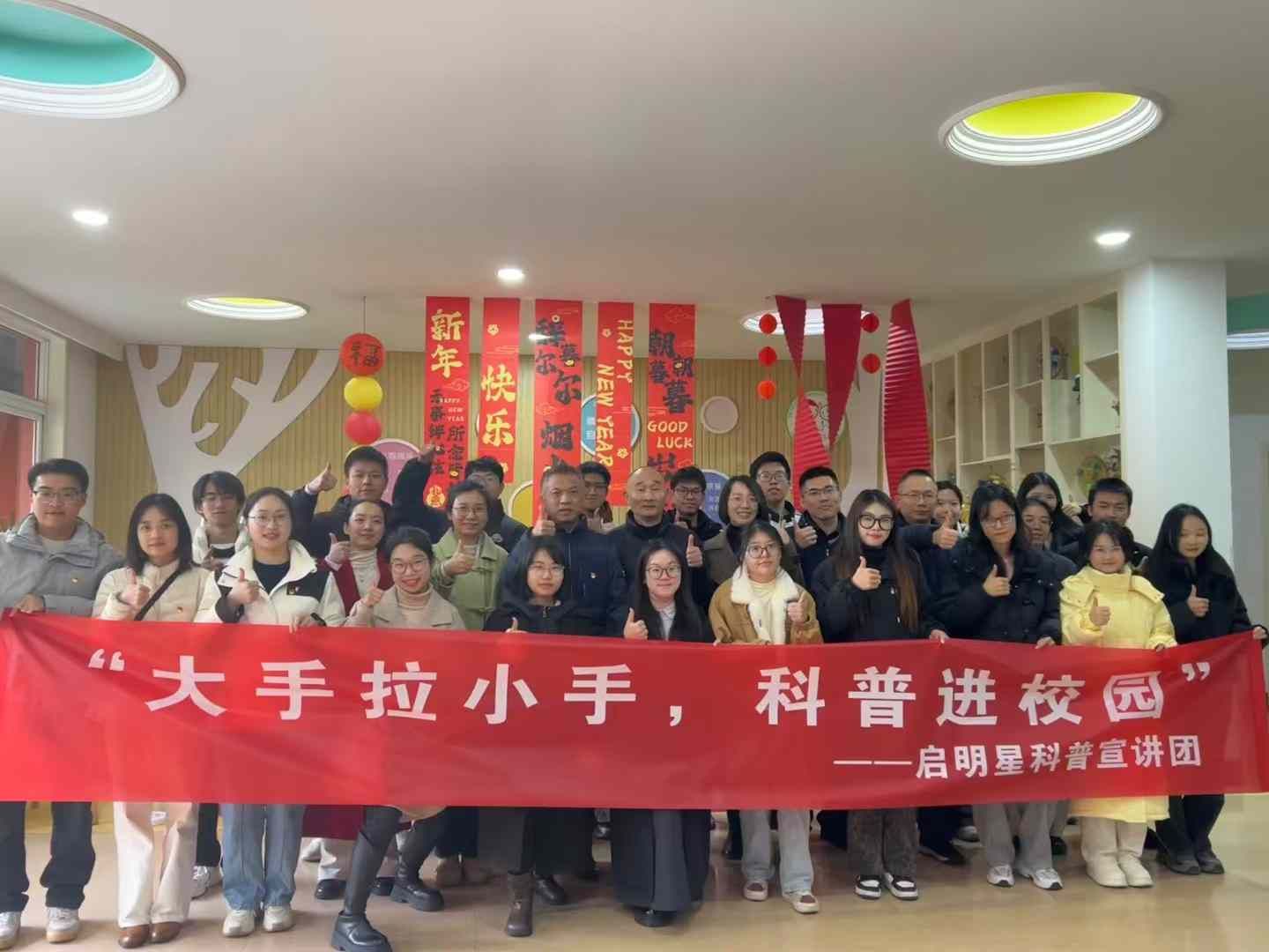 随后,学院党员师生与“启明星”科普宣讲团前往慈溪市逍林镇启慧幼儿园,为小朋友们送上了一场别开生面的科普实验小课堂。党员师生们精心准备了多个趣味科学实验,如气球花、风力发电、空气大炮等,通过生动的演示和讲解,让小朋友们感受到了科学的魅力和神奇。