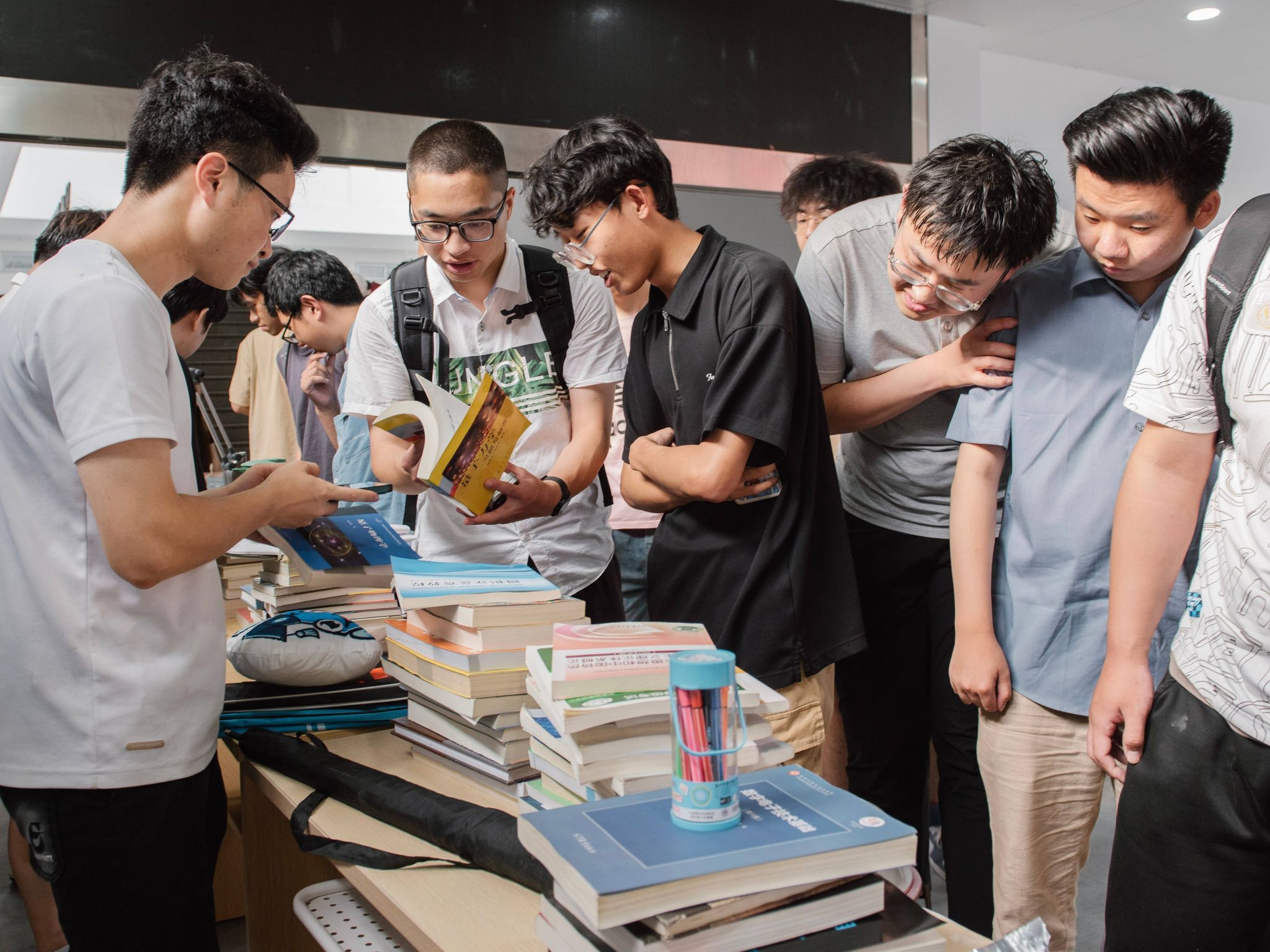 活动从下午4点开始,毕业生们在学院一楼公共区域设置了各班摊位,出售包括书籍、文具、小饰品等各种闲置物品。这些二手物品种类丰富、价格实惠,吸引了众多在校师生前来选购。摊位前人头攒动、热闹非凡,大家在轻松愉快的氛围中交流与交易,场面十分温馨和谐。