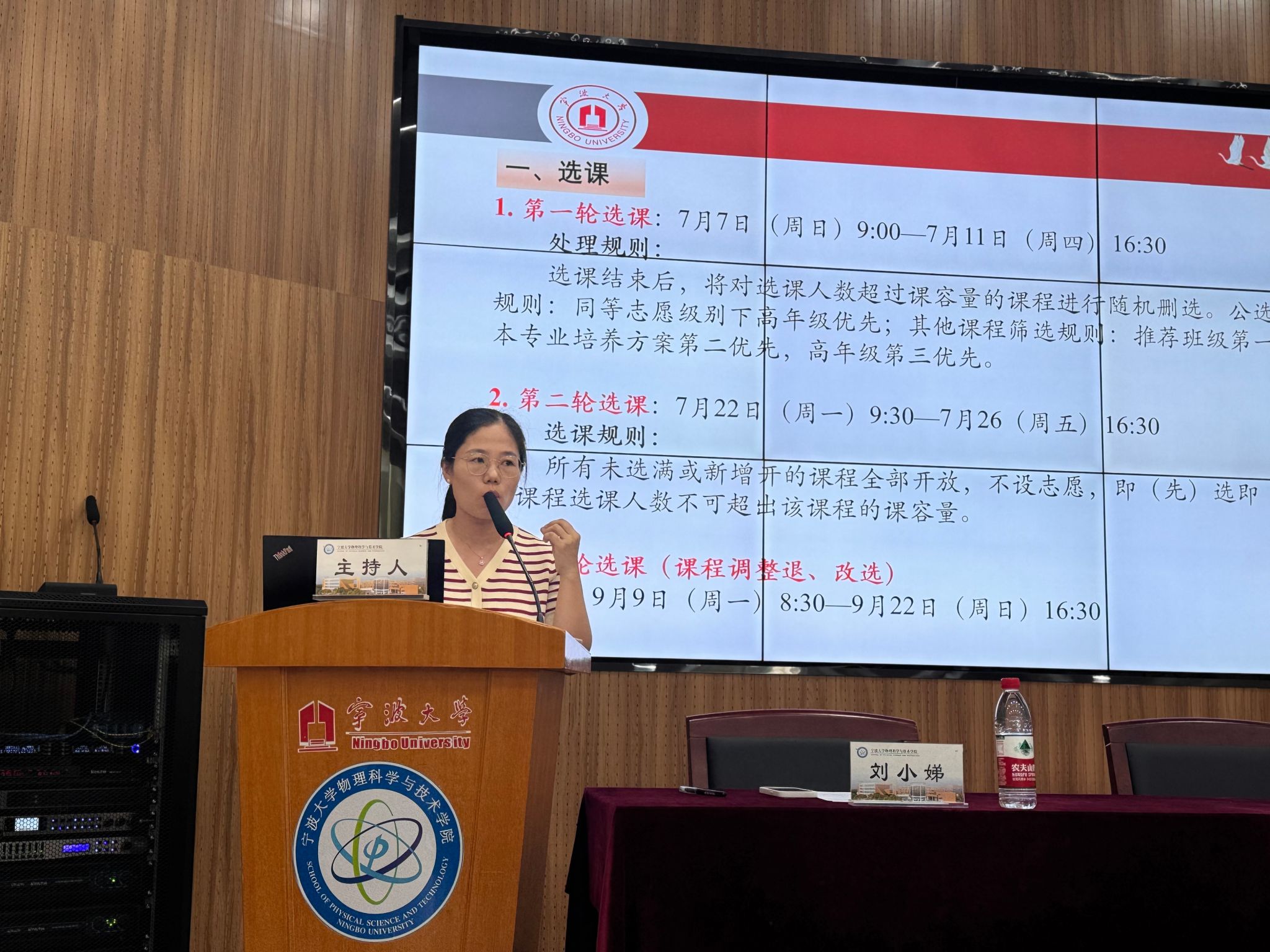 见面会上,学院学术副院长王保敏还宣读了关于聘任2023级本科生班主任的决定并颁发聘书。随后,学院党政办、教务办、学工办相关负责老师依次上台,向同学们详细介绍了各自的职责分工,并就同学们在未来三年在选课、竞赛、寝室等方面可能遇到的问题做出提醒。