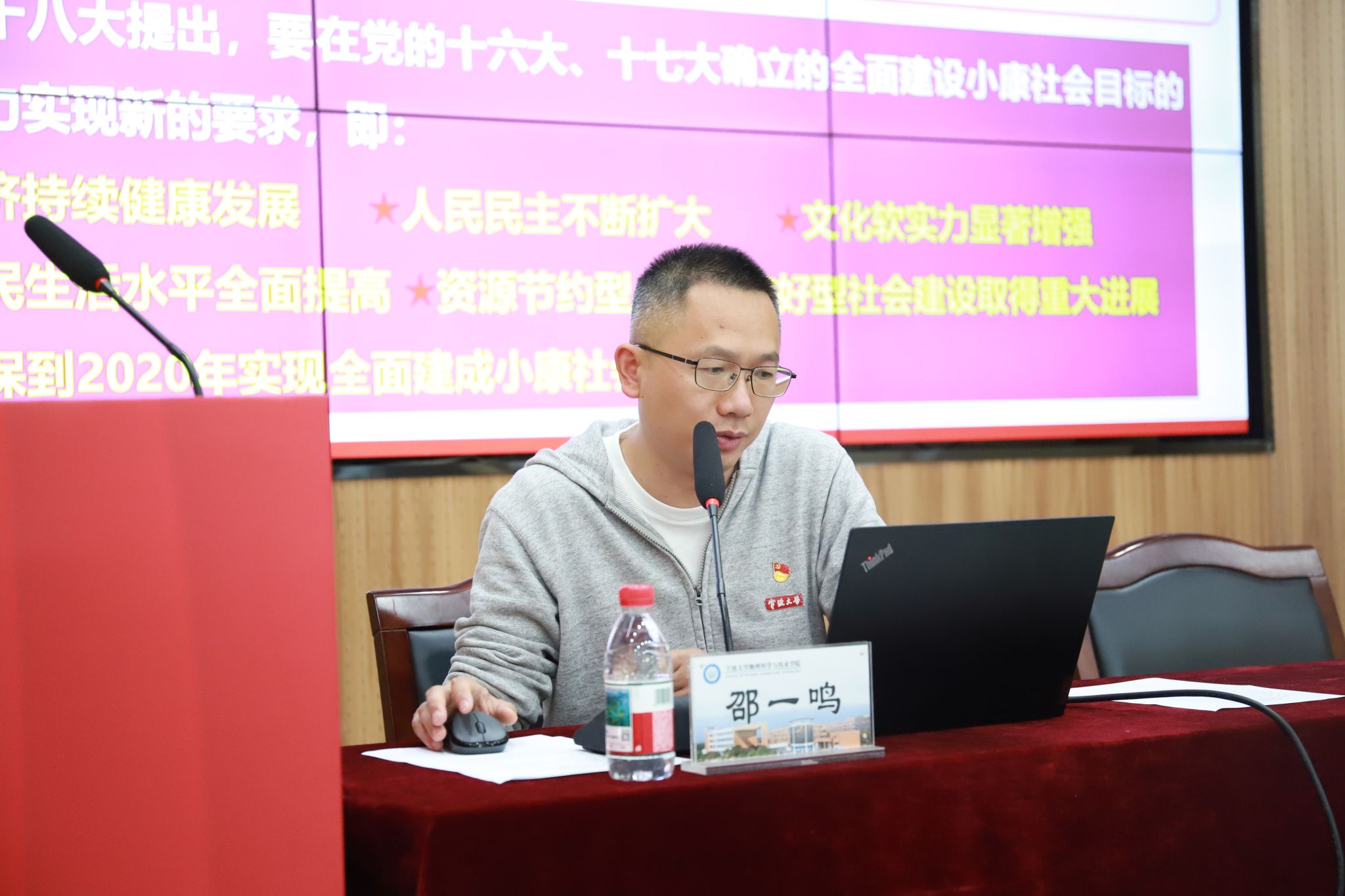 开班仪式后,邵一鸣老师以“新中国史之中国特色社会主义进入新时代”为主题,为全体学员们上了第一讲。邵老师从中共十八大和实现中华民族伟大复兴的中国梦展开,深入讲解了习近平新时代中国特色社会主义思想,就“五位一体”总体布局和“四个全面”战略布局、建设美丽中国、坚持“一国两制”和推进祖国统一、推动构建人类命运共同体等多维度进行了详细阐述。他鼓励学员们深入学习领会新时代的内涵与要求,将个人成长融入国家发展大局,为实现中华民族伟大复兴的中国梦贡献自己的力量。
