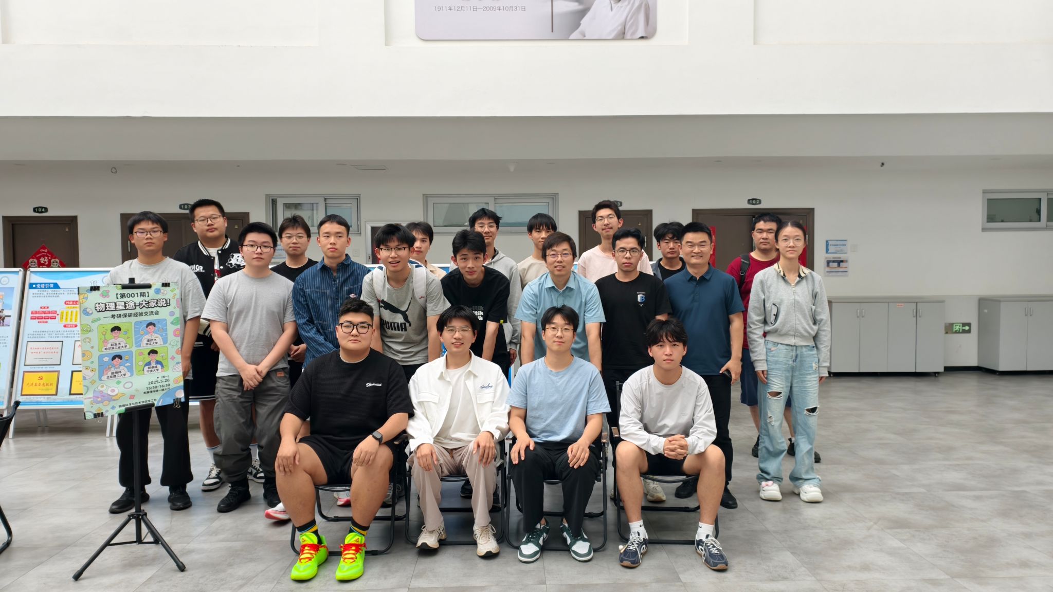 5月26日,由萌次元 学工办、就业发展中心,校“启明星”大学生生涯发展工作室联合打造的物理星途“大家说”首期生涯交流会在龙赛理科楼北楼一楼大厅成功举办。本期活动以“考研保研经验交流”为主题,邀请赵玉杰、潘政允、赵恒伟、郭卓成4名2021级同学进行经验分享,吸引了学院10余名教师和30余名学生积极参与。现场气氛热烈,交流深入,取得了预期效果。