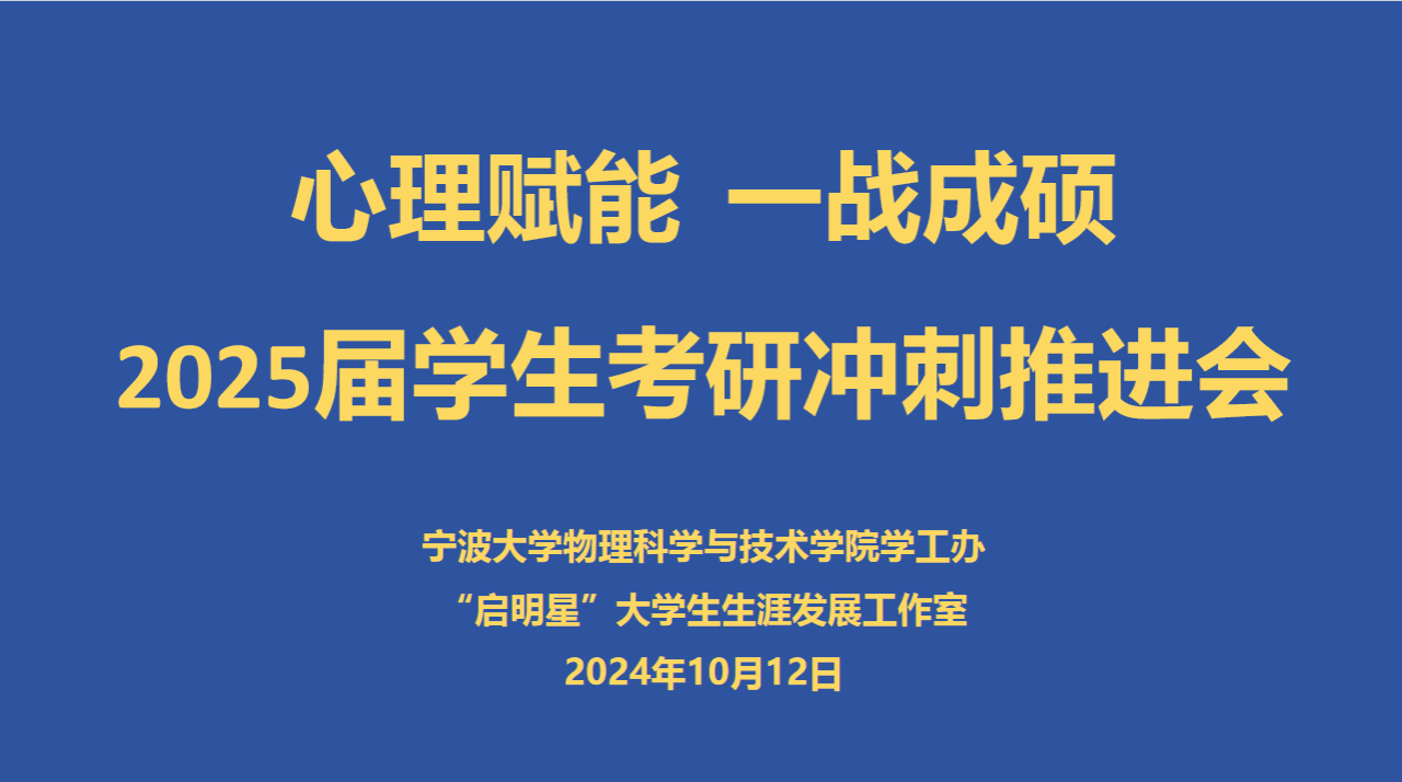 10月12日,萌次元 在龙赛报告厅举办了“心理赋能、一战成硕”2025届学生考研冲刺推进会。学校心理健康中心宋洪波,学院副院长胡子阳,物理系主任汤世伟、学工办主任常文豪,以及2025届拟考研学生参加了此次活动,活动还邀请了3位硕士研究生进行考研冲刺经验交流。该活动由学院学工办主办,学院“启明星”大学生生涯发展工作室协办。