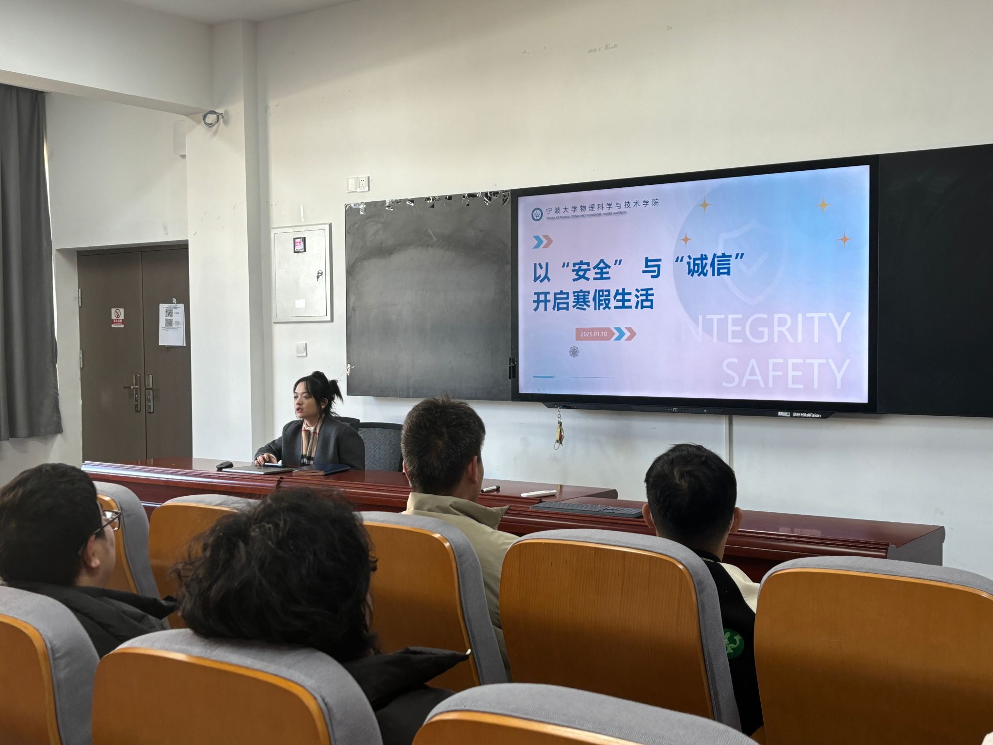 于龙赛理科楼北楼314会议室举行了一场以“安全”和“诚信”为主题的班团骨干安全教育培训会议。此次会议旨在通过发挥班长的纽带作用,将学院的安全叮嘱和诚信教育传递给每位同学,共同度过一个平安美好的寒假。学院党委副书记刘小娣首先强调,安全是学习和生活的基础,特别是在假期前后,...
