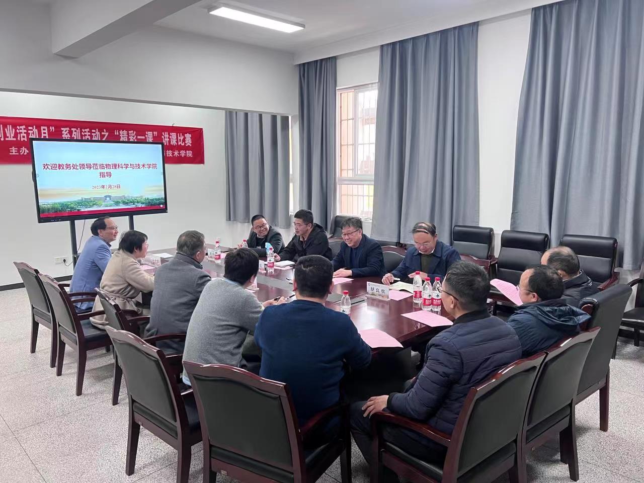 2月28日下午,校教务处处长李国平携副处长林波、胡良根、周刚毅一行到物理科学与技术院调研,学院院长段香梅、党委书记朱学庆、教学副院长胡子阳、专业负责人、教务办主任及教师代表参加了本次调研会。会议由萌次元