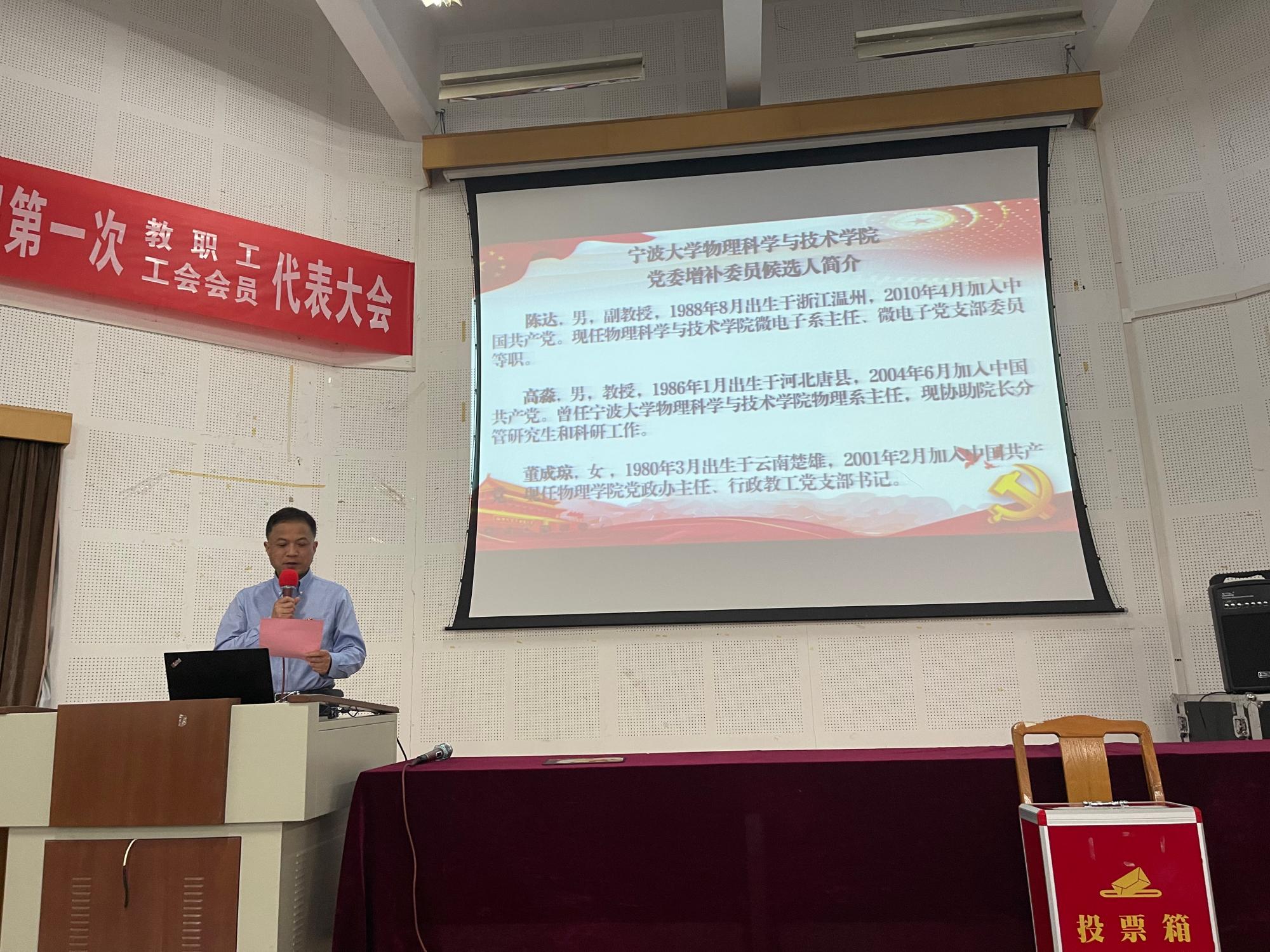 组织召开了全院师生党员大会。会议严格按照规定程序,以无记名投票的方式,差额选举产生了党委增补委员2名,纪委增补委员3名。会议由院党委副书记、纪委书记刘小娣同志主持。大会应到会有表决权、选举权和被选举权的正式党员124人,因事、因病请假10人,实到会党员114人。根据会议程序,张锡炜同志宣读了《中共宁波...